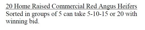 Terms of the sale are cash. Every animal will be sold to the highest bidder.