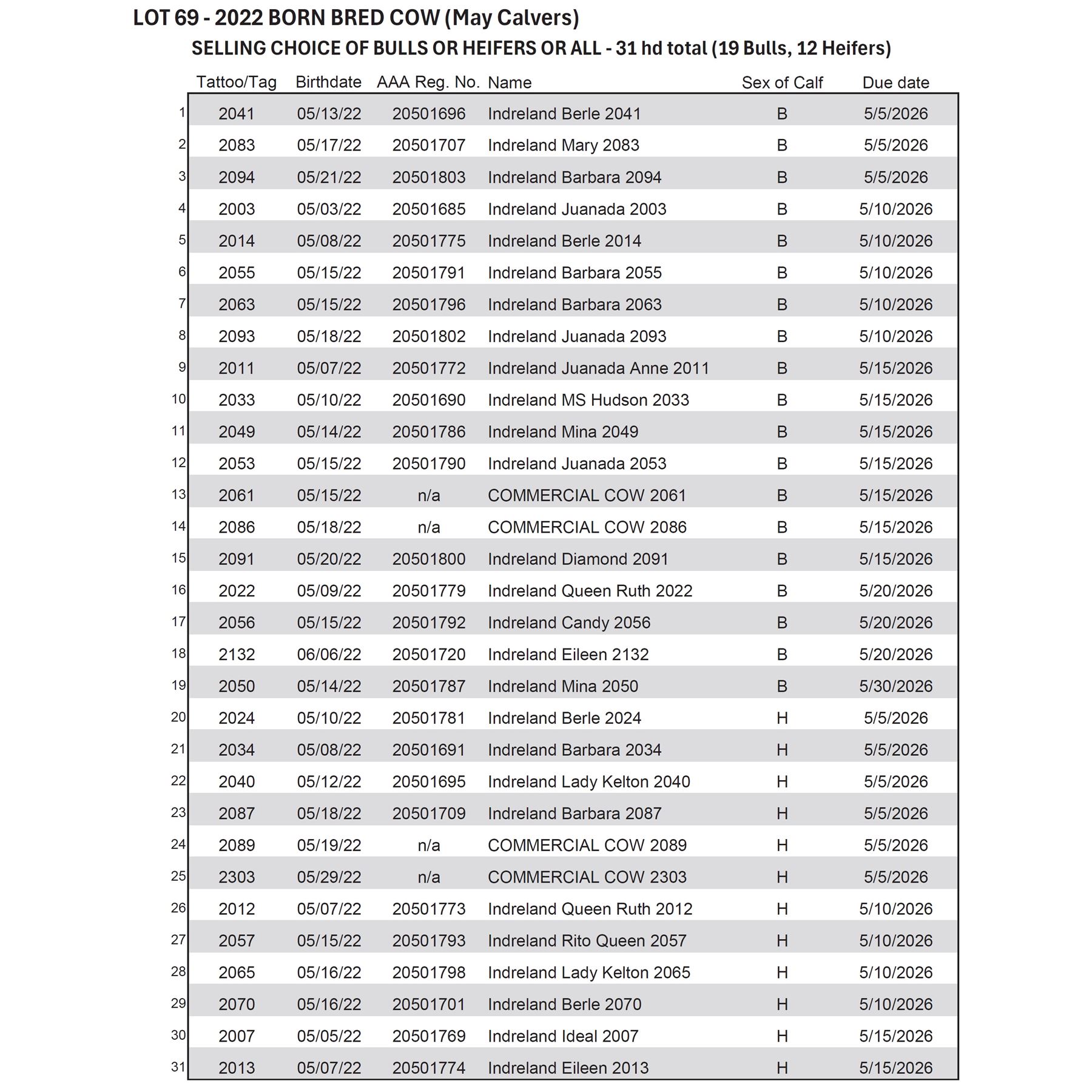 2022 BORN BRED COW (May Calvers)