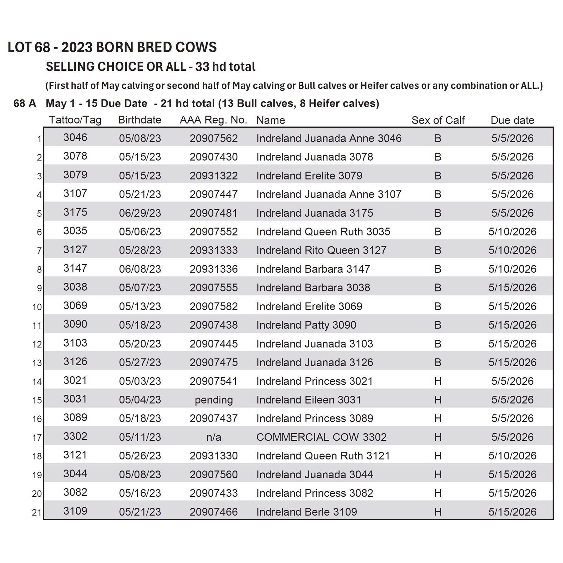 May 1 - 15 Due Date - 21 hd total (13 Bull calves, 8 Heifer calves)
