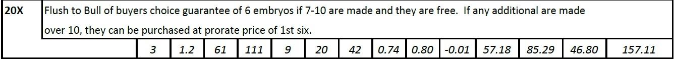 Flush to Bull of buyers choice guarantee of 6 embryos if 7-10 are made and they are free. If any additional are made