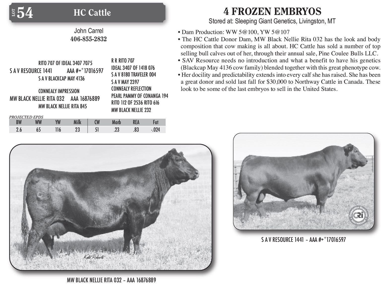 • The HC Cattle Donor Dam, MW Black Nellie Rita 032 has the look and body
