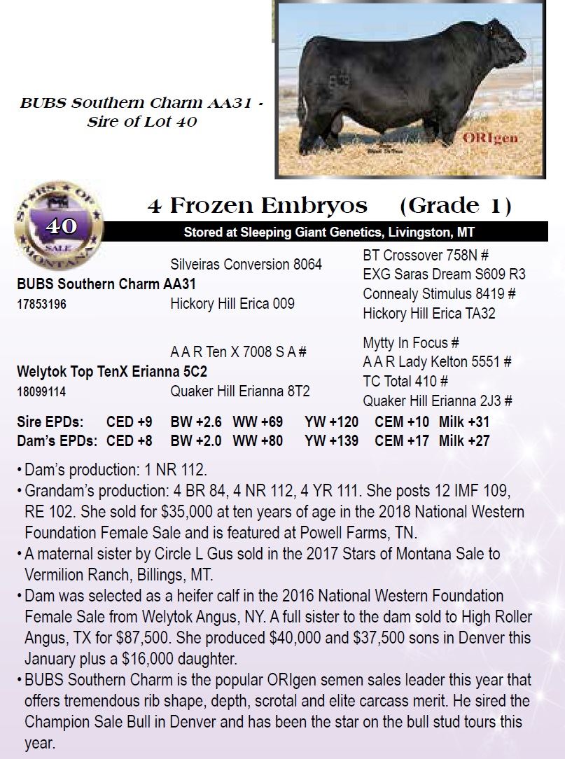• Dam was selected as a heifer calf in the 2016 National Western Foundation