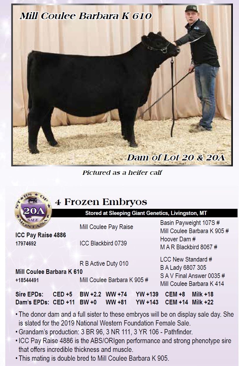 • This mating is double bred to Mill Coulee Barbara K 905.