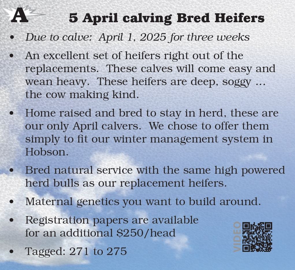 We will continue to offer a pickup credit of $100 per head for all bulls picked up within 7 days of
