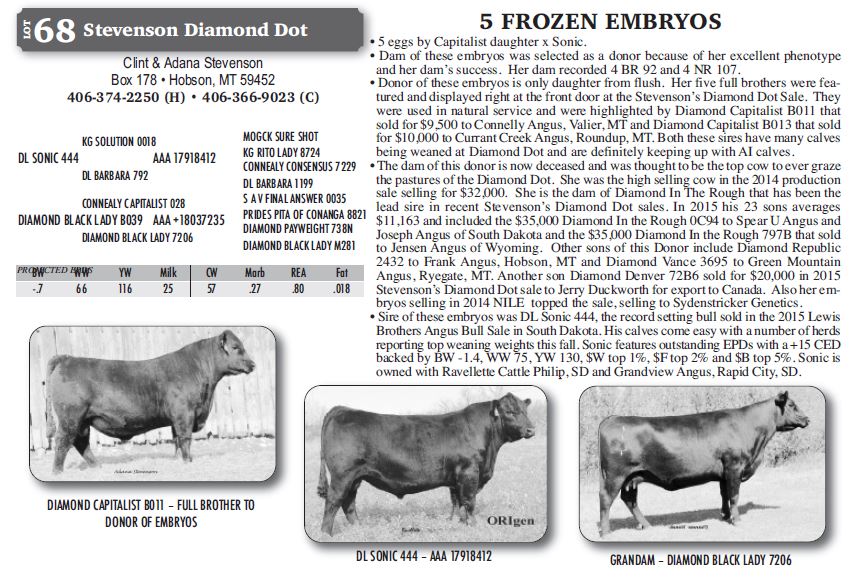 • Sire of these embryos was DL Sonic 444, the record setting bull sold in the 2015 Lewis