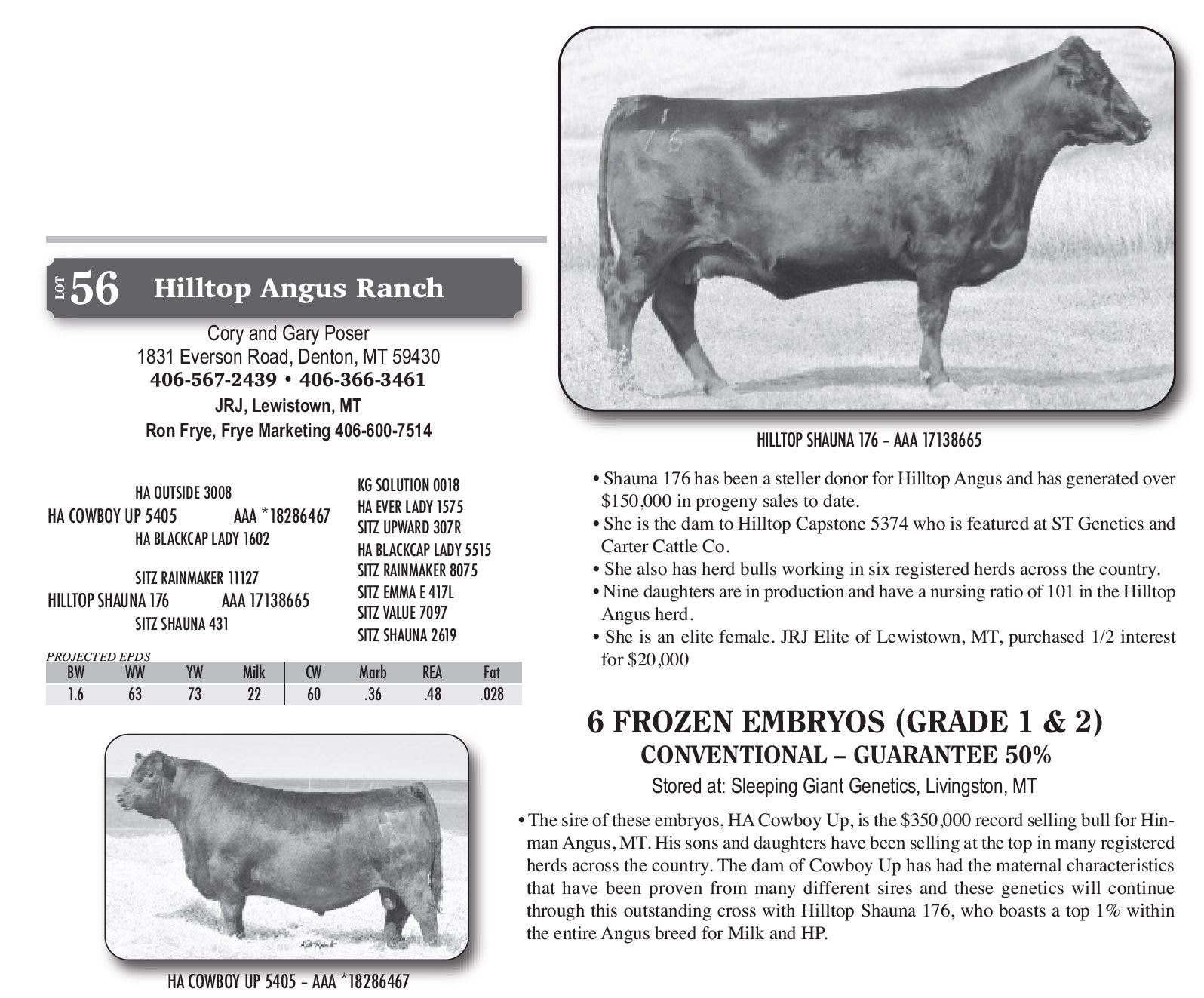 Angus, MT. His sons and daughters have been selling at the top in many registered