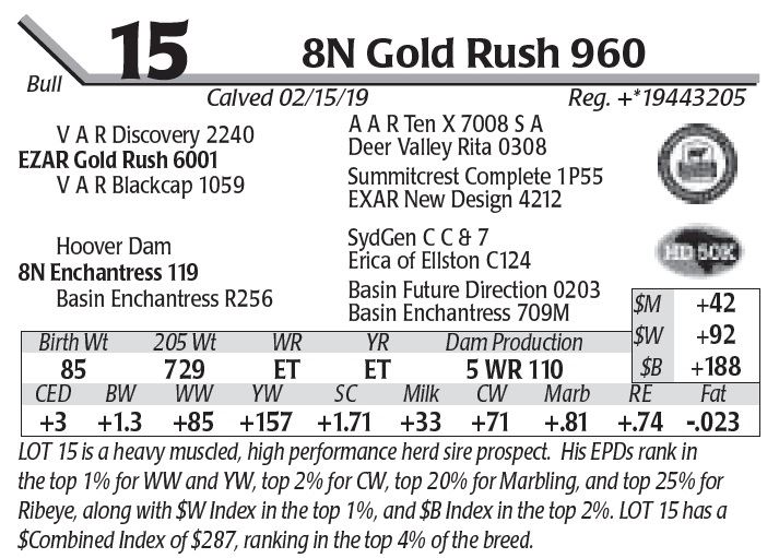 Ribeye, along with $W Index in the top 1%, and $B Index in the top 2%. LOT 15 has a