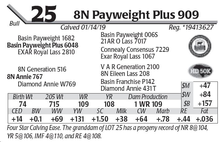 Four Star Calving Ease. The granddam of LOT 25 has a progeny record of NR 8@104,