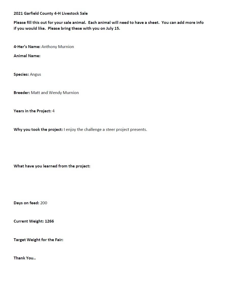 ANIMALS WILL BE SOLD $ PER POUND, BID PRICE MULTIPLIED BY WEIGHT!
