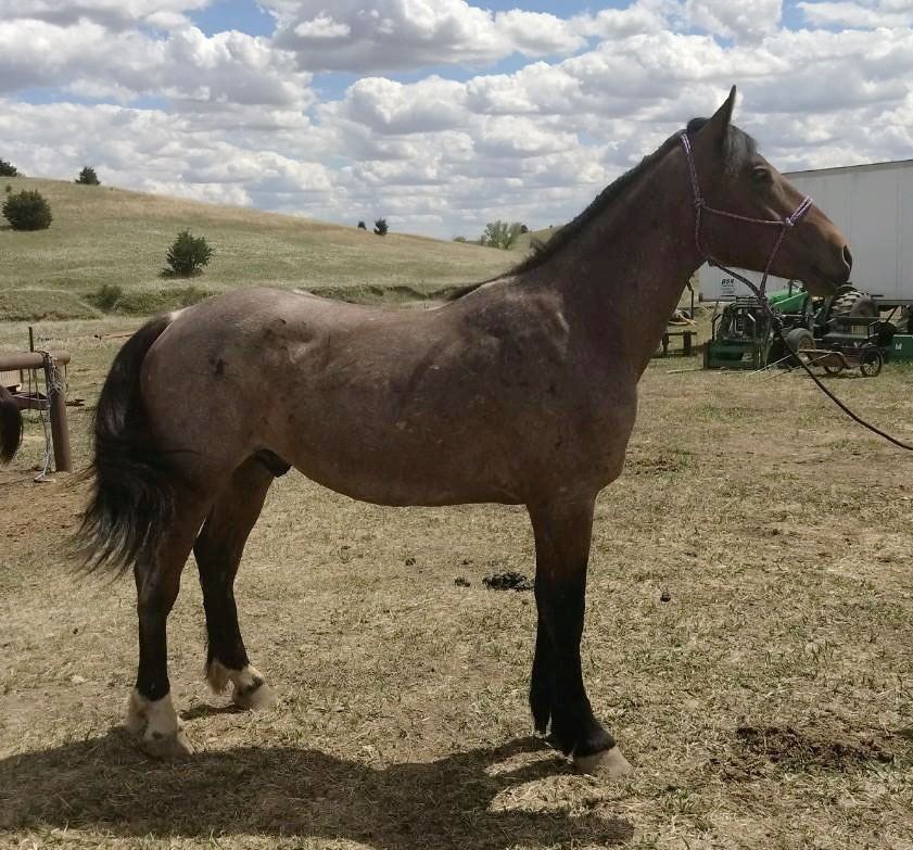 Sired by S S WIll, a registered Brabant stallion and out of a Belgian x QH mare, this young gelding stands approx 16:2hh. He is very quiet and friendly. Anyone can ride him. He has been roped off of and he has a very smooth, easy lope. He has been rode inside and outside with a lot of time in the hills. He goes where you point him with no issue. Because of his size, we started him young. For a 20 month old colt, he does a great job! For more info call 308-362-7615
