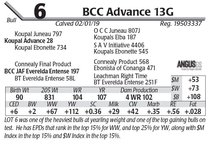 LOT 6 was one of the heaviest bulls at yearling weight and one of the top gaining bulls on