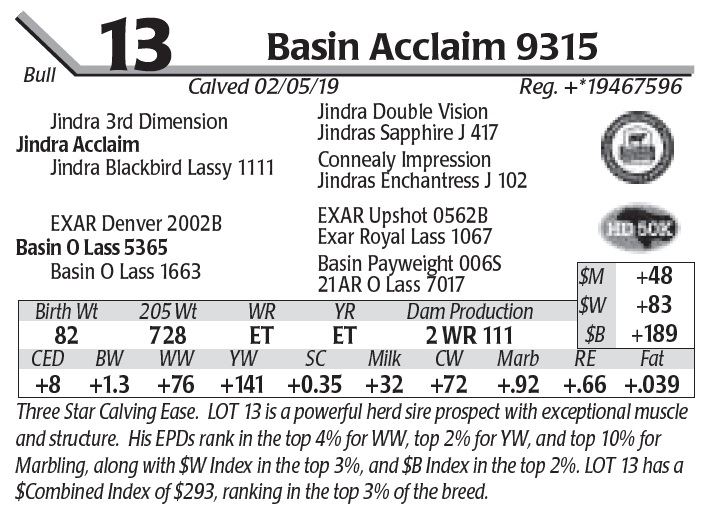 Marbling, along with $W Index in the top 3%, and $B Index in the top 2%. LOT 13 has a