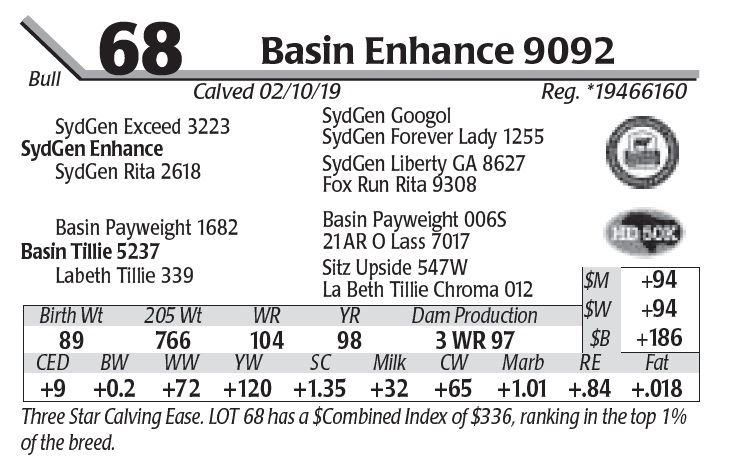 Three Star Calving Ease. LOT 68 has a $Combined Index of $336, ranking in the top 1%