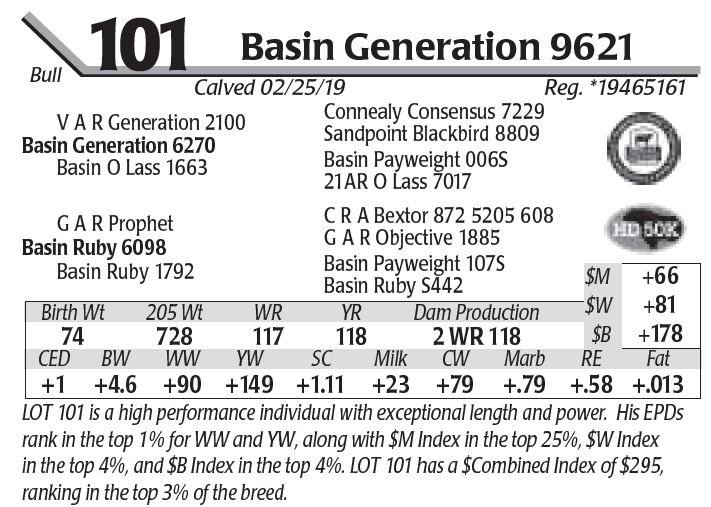 LOT 101 is a high performance individual with exceptional length and power. His EPDs