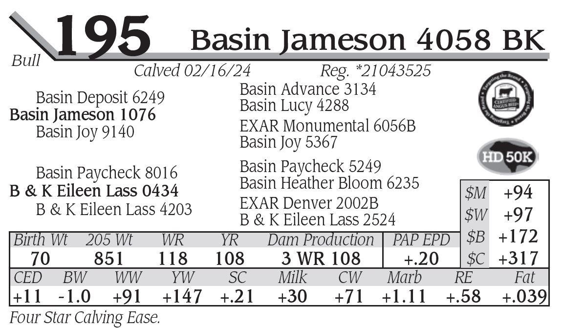 This sale is being conducted under the suggested terms and conditions adopted by the American Angus Association effective March 16, 1992. except for those stated in the terms and