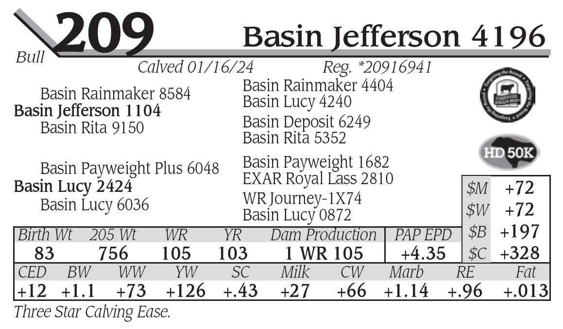 This sale is being conducted under the suggested terms and conditions adopted by the American Angus Association effective March 16, 1992. except for those stated in the terms and
