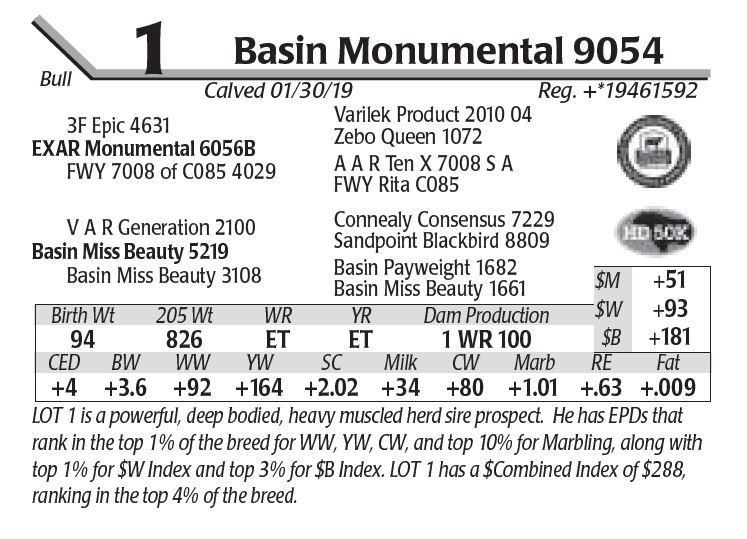 LOT 1 is a powerful, deep bodied, heavy muscled herd sire prospect. He has EPDs that
