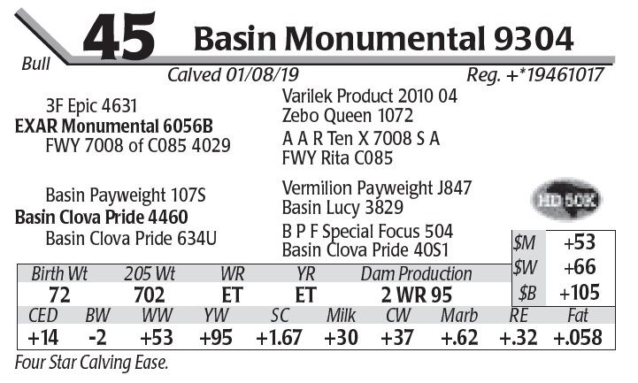 following the sale, will receive a discount of $50 per bull.