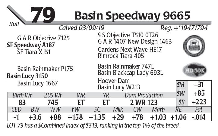 LOT 79 has a $Combined Index of $319, ranking in the top 1% of the breed.
