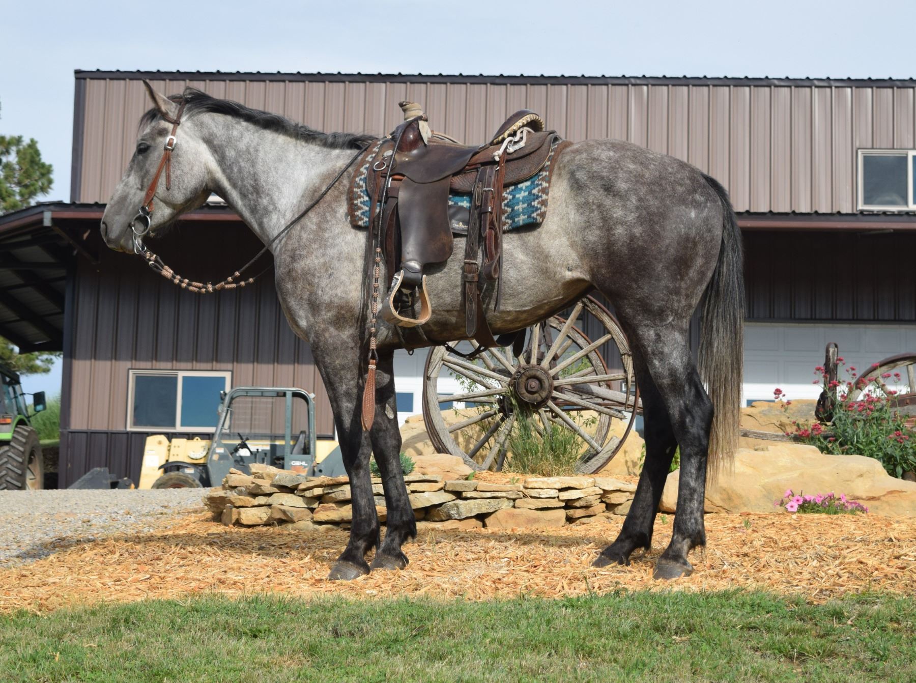 Bella is a larger mare standing over 16hh. Her color is beautiful and she often appears grey. This mare has been mostly used as a riding horse, to herd cattle and she also has experience in the roping pen. This mare does need an experienced rider. This mare is home raised. Her sire is a striking 1/2 Frieisan, 1/4 Percheron, 1/4 Spotted Draft stallion that the Troyers own and stand. For more information please call DeWayne at 406-366-9782.