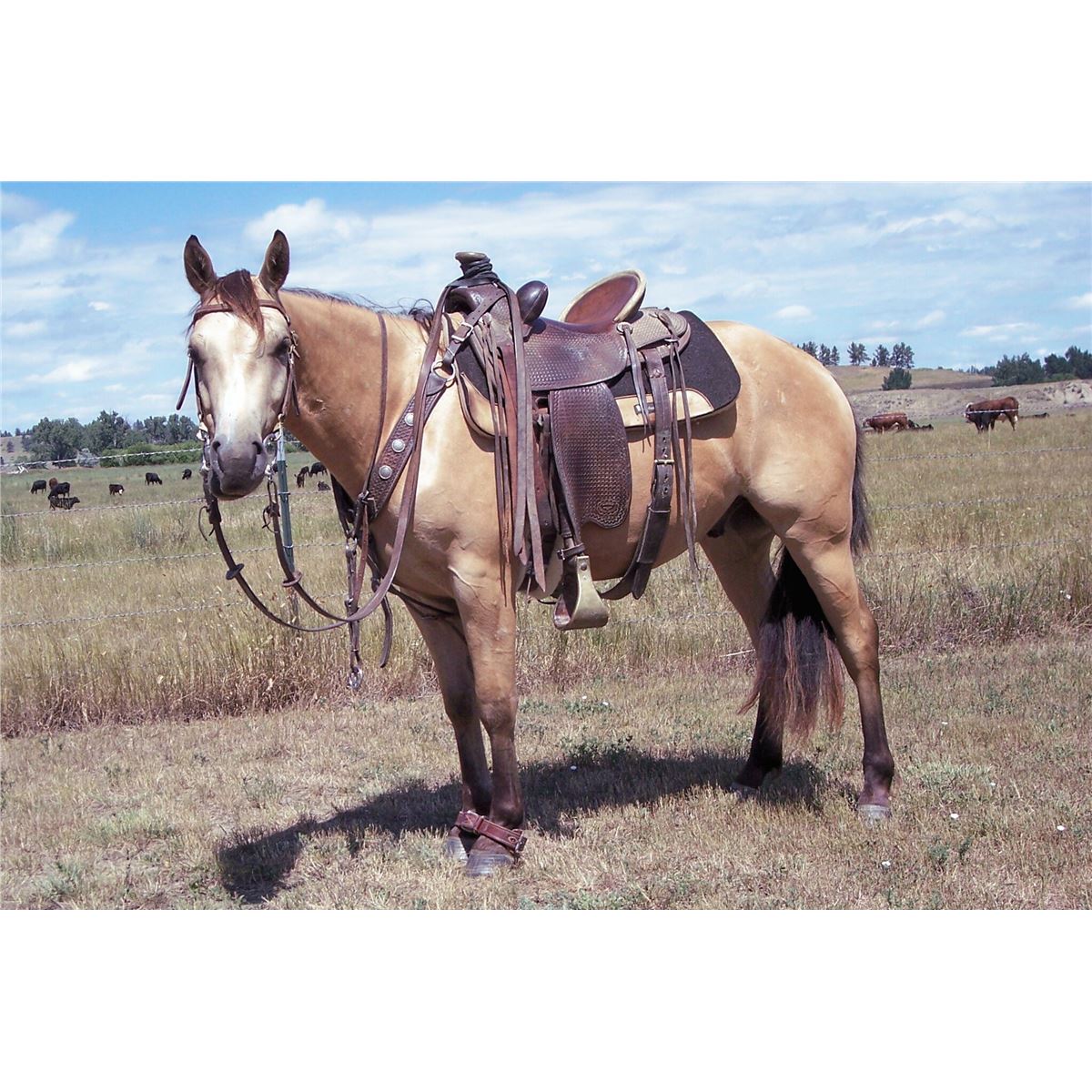 Bill is a very small working ranch horse. He has been "on staff" with us since he was three. He has drug many calves to the fire, worked at the feedlot, "put out" a million pairs and is GREAT in the ruff country. He would do well at team penning/sorting. Bill is not for kids. I would love to find this little horse a true owner not just a buyer. Please contact me at mtquarter@rangeweb.net