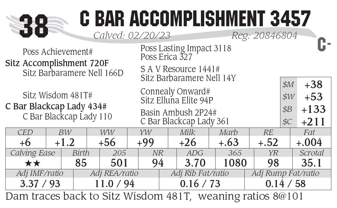 Dam traces back to Sitz Wisdom 481T, weaning ratios 8@101