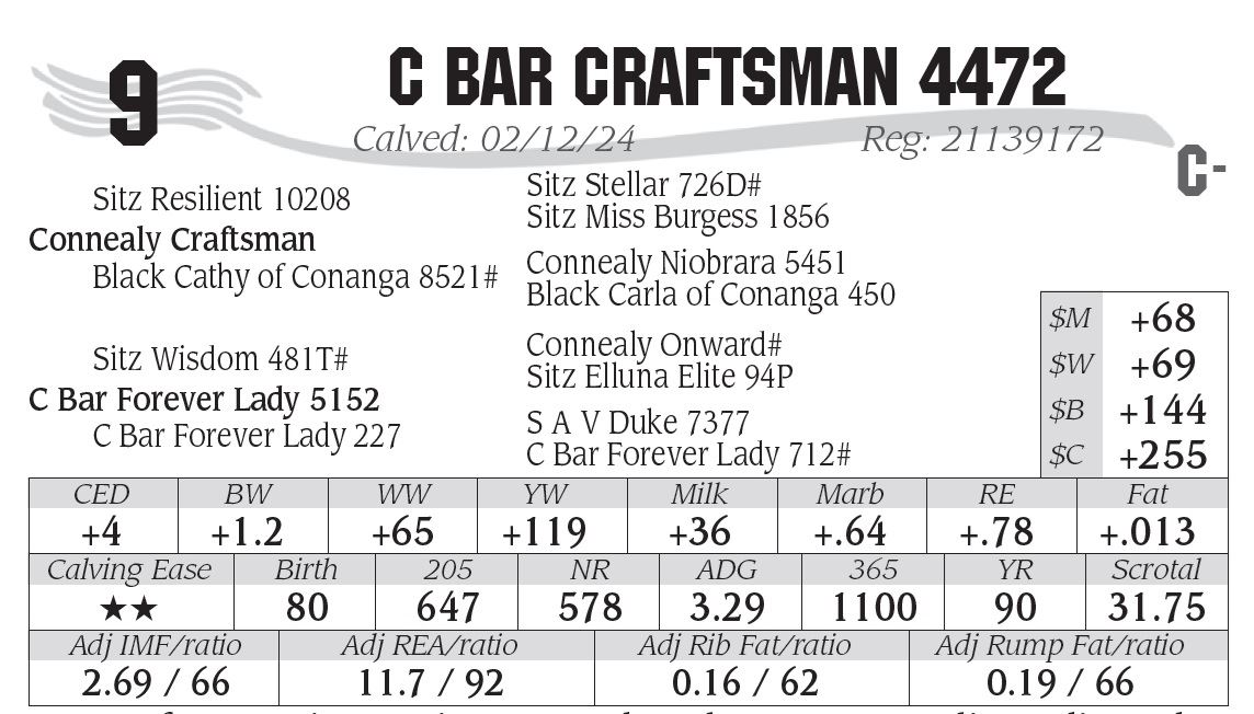 • A Craftsman sire to Sitz Upward/Duke cow Yearling adjusted