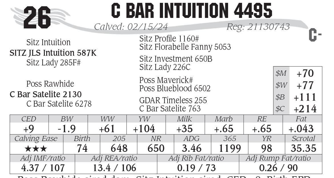 • Poss Rawhide sired dam, Sitz Intuition sired, CED +9, Birth EPD