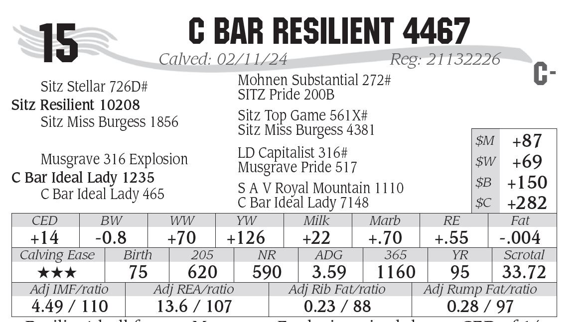 • Resilient bull from a Musgrave Explosion sired dam CED of 14