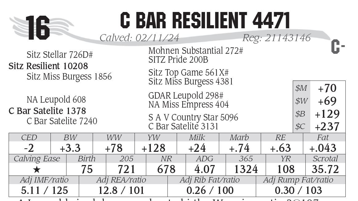 • A Leupold sired dam moderate birth Weaning ratio 2@107