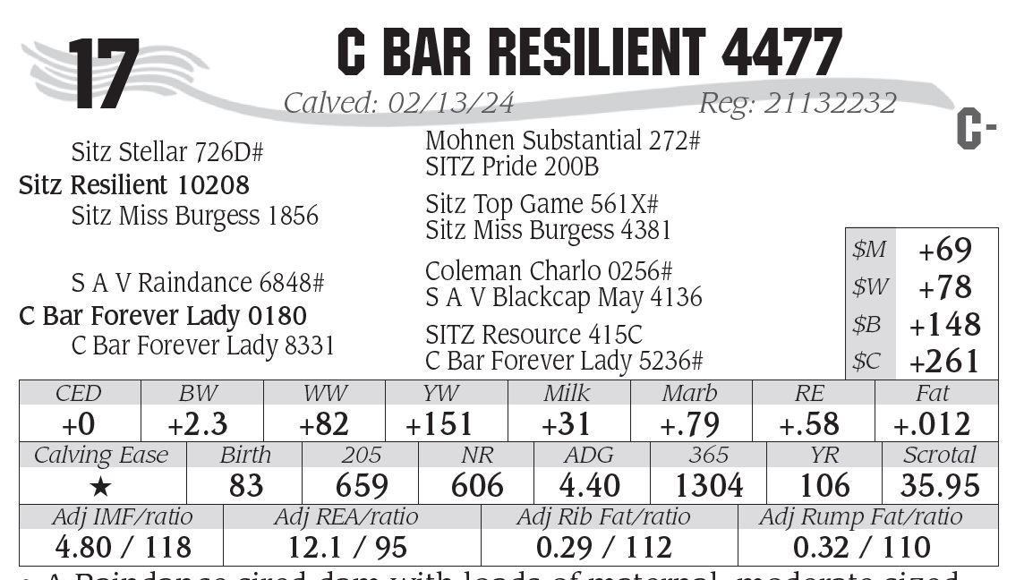 • A Raindance sired dam with loads of maternal, moderate sized,