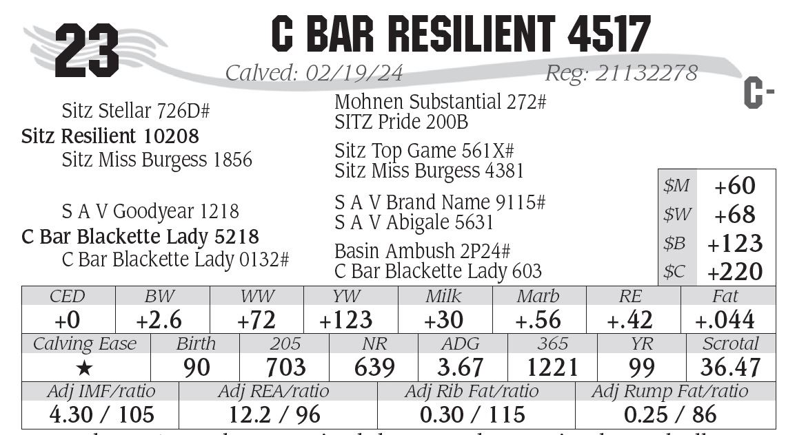 • Goodyear/Brand Name sired dam, moderate sized cow bull