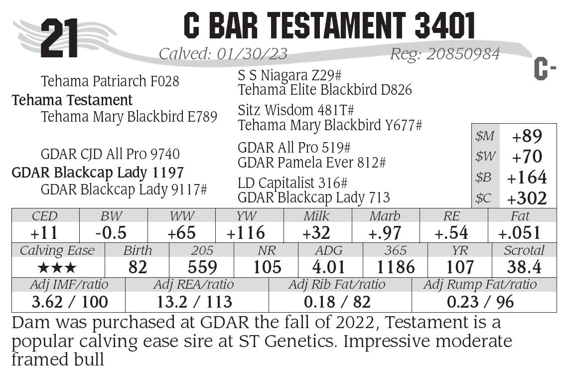 Dam was purchased at GDAR the fall of 2022, Testament is a
