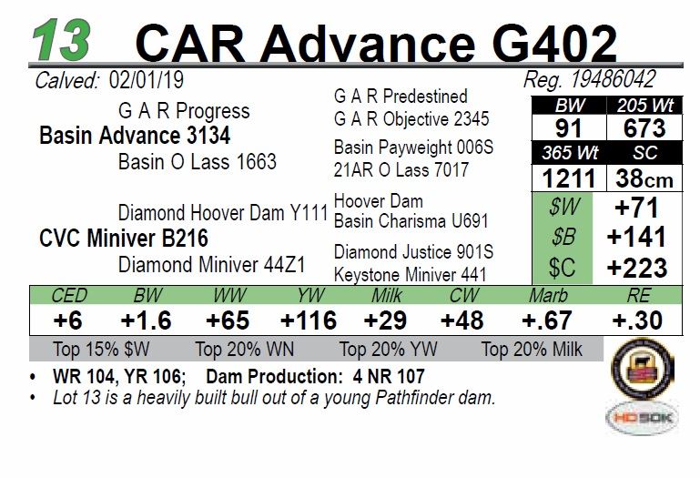 • Lot 13 is a heavily built bull out of a young Pathfinder dam.