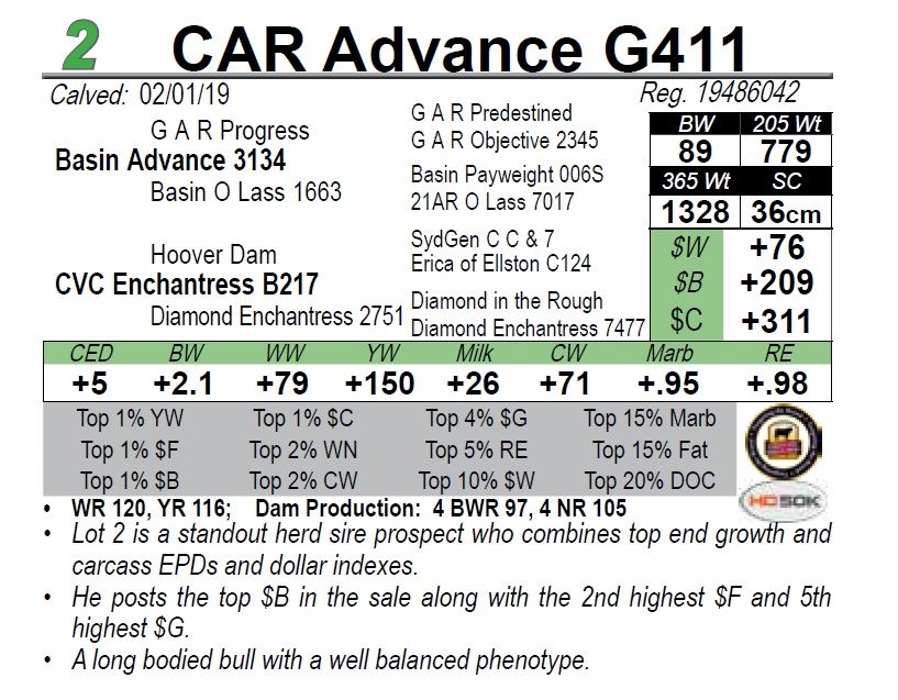 • Lot 2 is a standout herd sire prospect who combines top end growth and