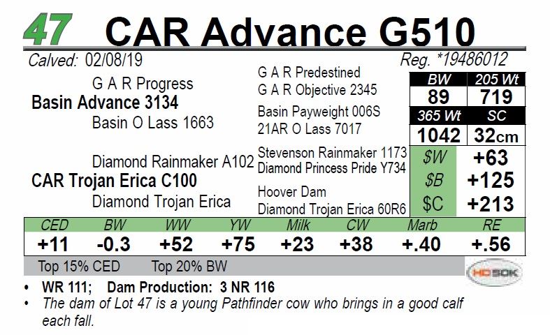 • The dam of Lot 47 is a young Pathfinder cow who brings in a good calf