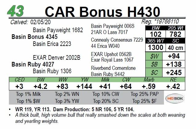 • A thick built, high volume bull that really smashed down the scales at both weaning