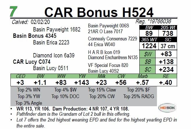 • Lot 7 offers the 2nd highest weaning EPD and tied for the highest yearling EPD in