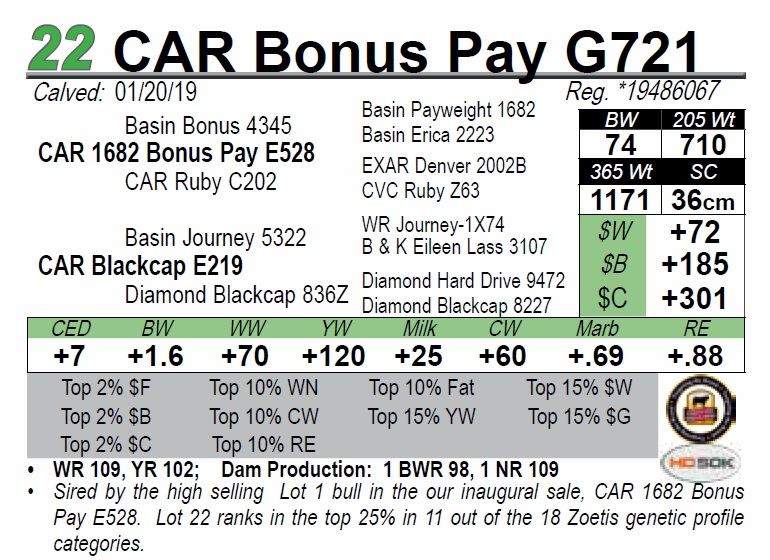 • Sired by the high selling Lot 1 bull in the our inaugural sale, CAR 1682 Bonus
