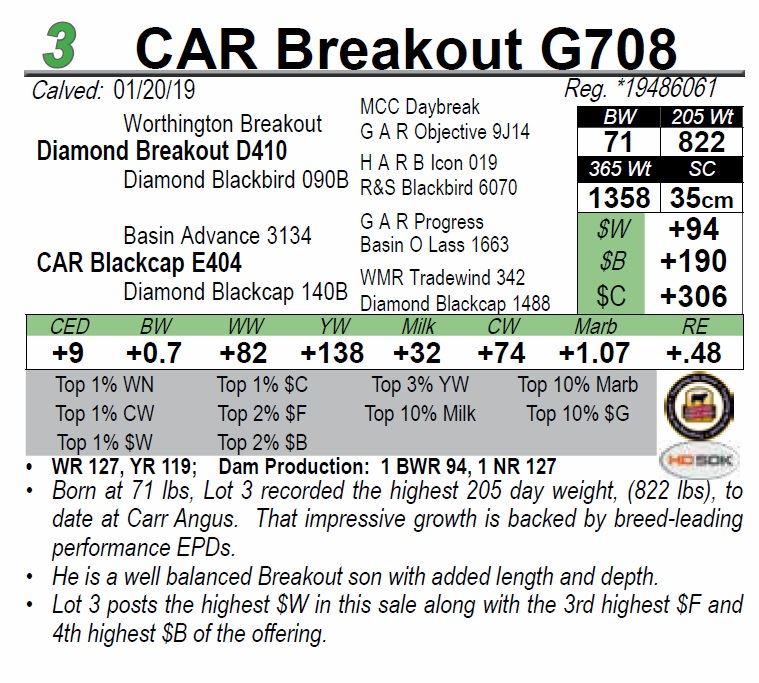 • Lot 3 posts the highest $W in this sale along with the 3rd highest $F and