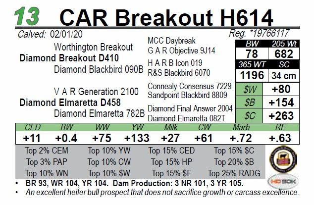 • An excellent heifer bull prospect that does not sacrifice growth or carcass excellence.