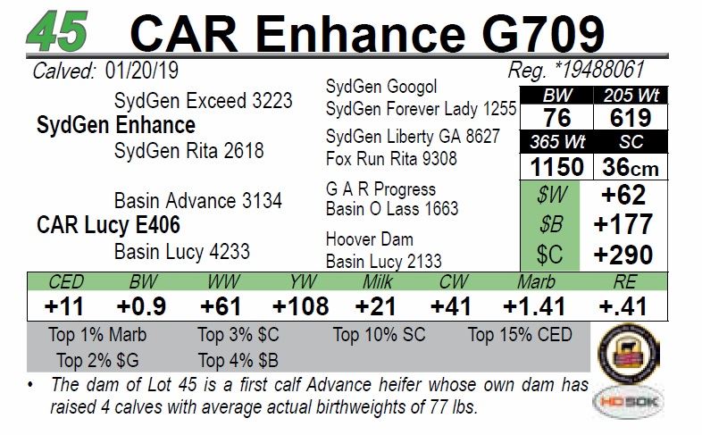 • The dam of Lot 45 is a first calf Advance heifer whose own dam has