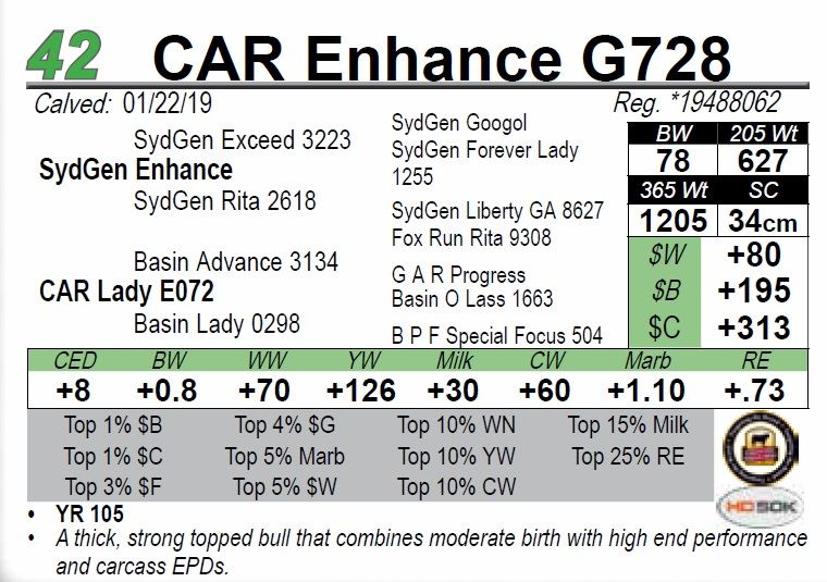 • A thick, strong topped bull that combines moderate birth with high end performance