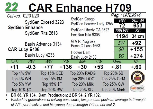 • Backed by generations of calving ease cows, his grandam posts an average birthweight