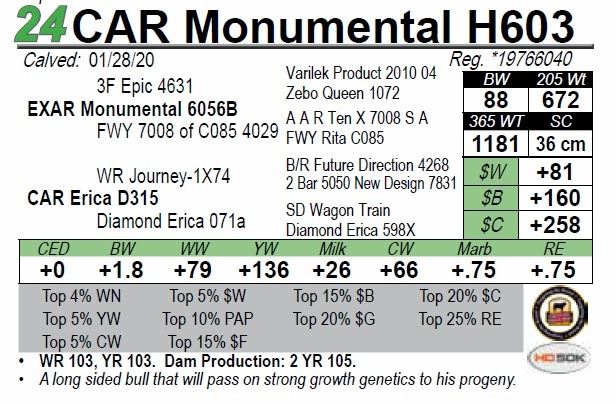 • A long sided bull that will pass on strong growth genetics to his progeny.