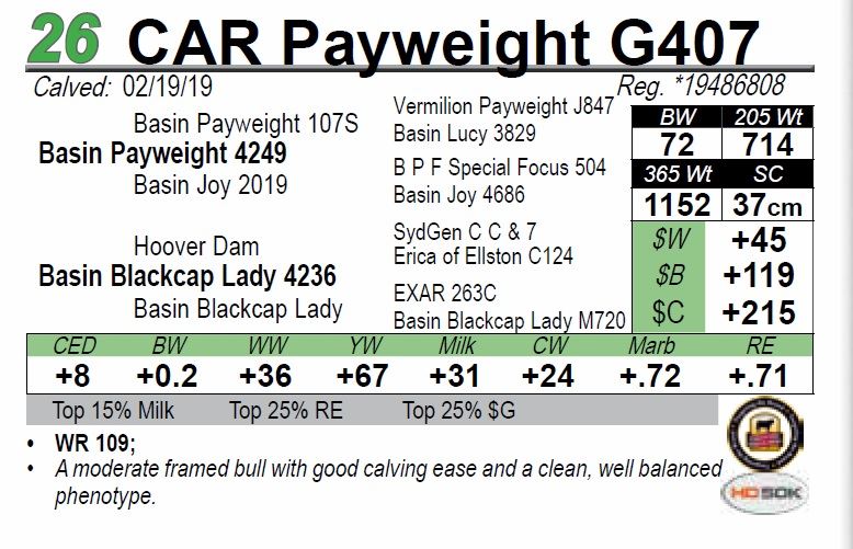 • A moderate framed bull with good calving ease and a clean, well balanced