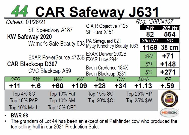 • The grandam of Lot 44 has been an exceptional Pathfinder cow who produced the