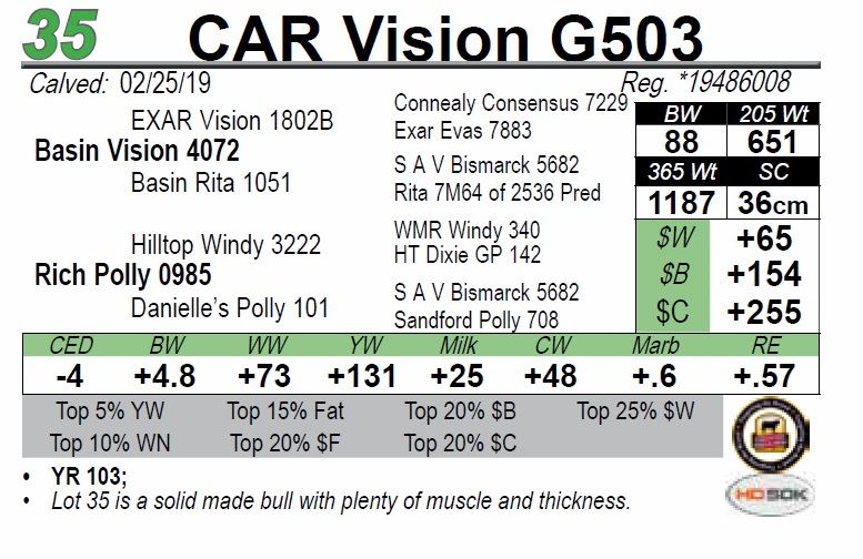 • Lot 35 is a solid made bull with plenty of muscle and thickness.