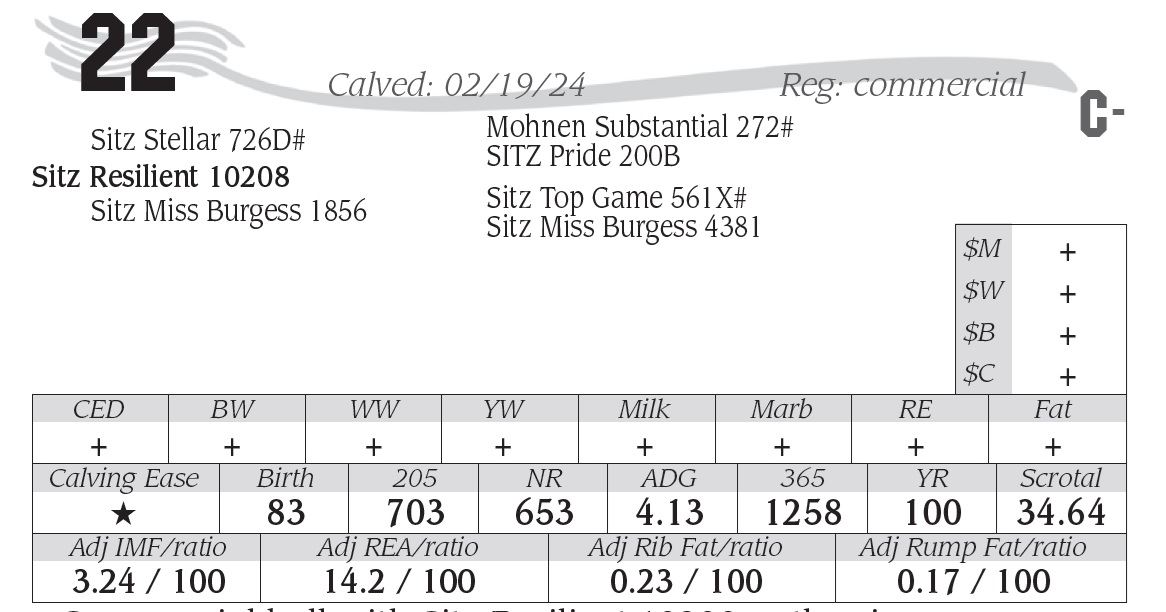 • Commercial bull with Sitz Resilient 10208 as the sire
