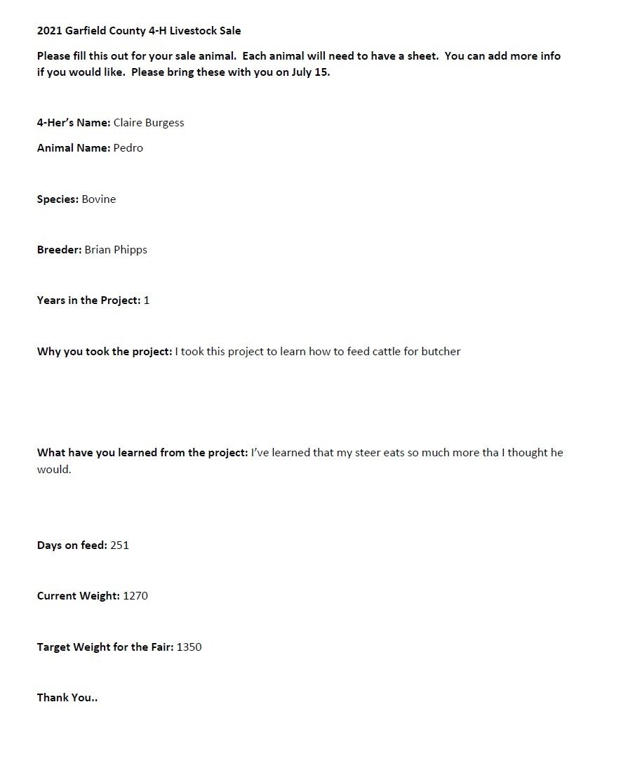 ANIMALS WILL BE SOLD $ PER POUND, BID PRICE MULTIPLIED BY WEIGHT!